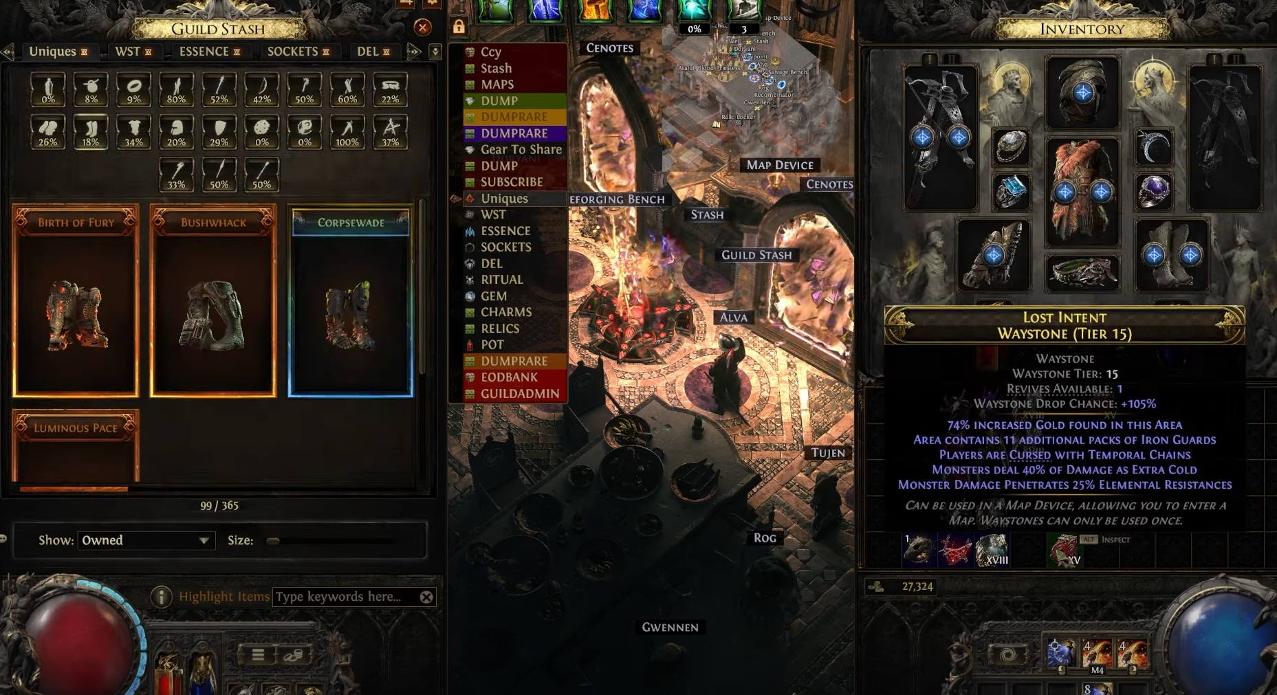 Map Tab – Great for endgame progression.